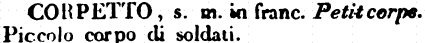 | Corpetto - s. m. in franc. Petit corpe. Piccolo corpo di soldati. [immagine] |